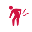 前かがみから状態を起こした際に激痛が出た様子。いわゆるぎっくり腰の症状。